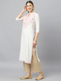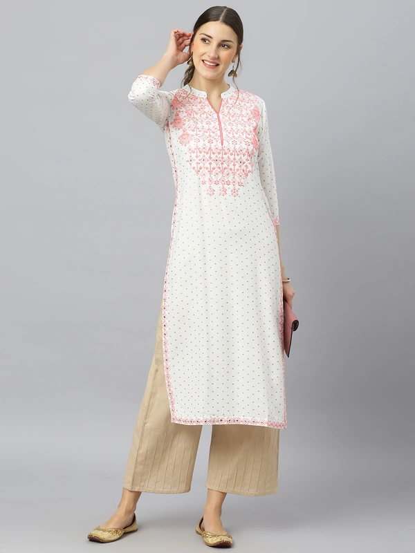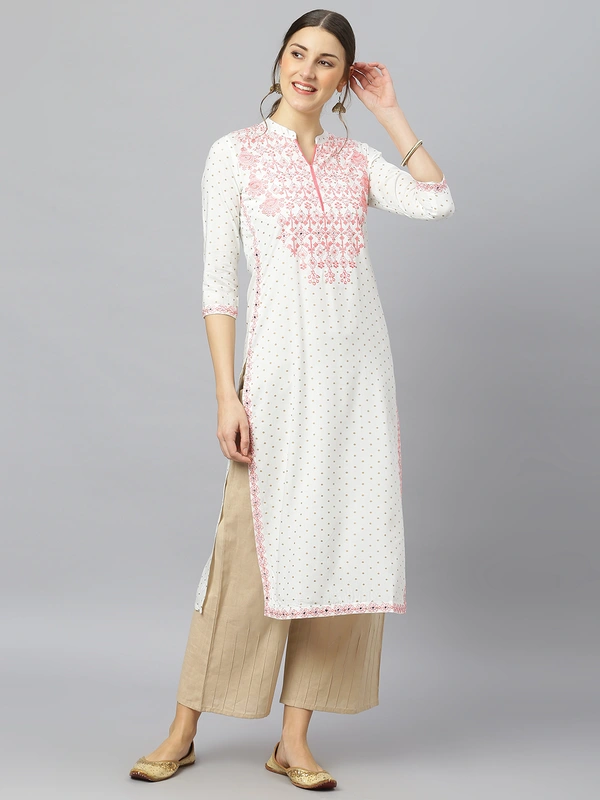 FASHION DEPTH Women Embroidered Rayon Straight Kurta